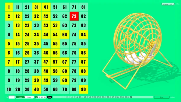 A bingo machine using 75 balls. Includes a whiteboard feature for predicting winning numbers and more.